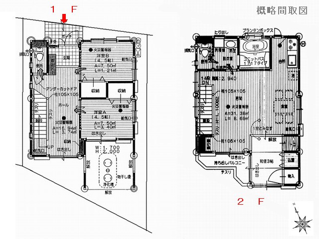 1F36.80㎡・2F45.58㎡ |